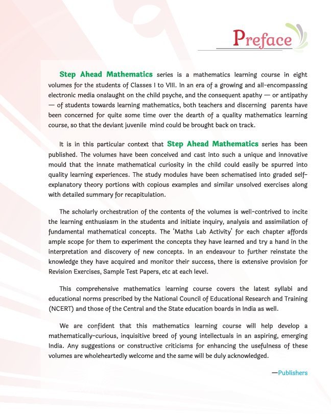 Step Ahead Mathematics Book 2 is a thoughtfully structured primary-level mathematics textbook aligned with NEP 2020 and designed to build strong foundational numeracy skills in young learners. Authored by Ankur Gupta and published by Whetstone Publishing, the book integrates graded explanations, lab-based activities, brain stimulants, revision exercises, and sample test papers to ensure conceptual clarity and skill development. The pedagogy focuses on inquiry-based learning, analytical thinking, and hands-on practice, making mathematics engaging, structured, and outcome-oriented for Class 2 students. The content is carefully curated as per updated educational norms and promotes mathematical curiosity, logical reasoning, and practical application.